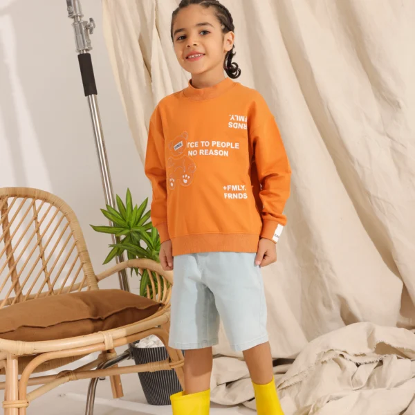 انشر اللطف والأناقة مع كنزة الأولاد الصيفية القطنية ذات الرقبة المستديرة "Nice To People". تتميز هذه الكنزة الرائعة برسومات دب عصرية وشعار "Nice To People No Reason" الملهم. مصنوعة من قطن صيفي ناعم ومريح للعب طوال اليوم.