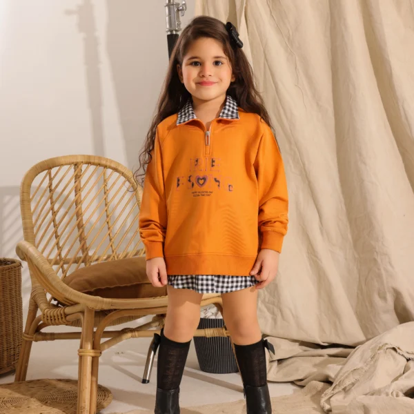 احصلي على مظهر الطبقات الأنيق دون عناء مع سترة نصف سحاب من القطن الصيفي للفتيات الصغيرات. هذا البلوز الرائع يتميز بتصميم "نصف قطعتين" مع ياقة وحافة بتصميم مربعات، مدمج مع قطننا الصيفي الناعم للعب طوال اليوم.