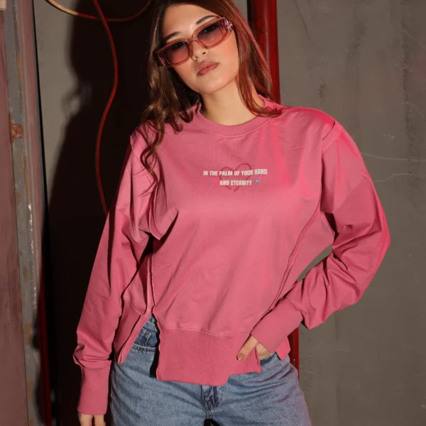 البساطة هي قمة الرقي مع سترة القطن الصيفية النسائية ذات العنق المستدير. يتميز بكتابة خفيفة في منتصف الصدر ونسيجنا الصيفي الفائق النعومة، هذا السويتر هو تعريف الأساسيات اليومية.